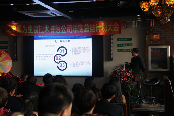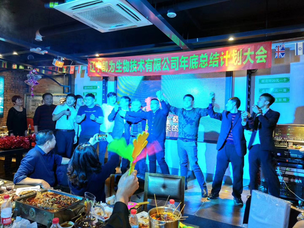 2018年1月8日,遼寧凱為生物技術有限公司2017年年度總結、表彰及2018年年度計劃大會在錦州西部音樂烤場一樓宴會大廳隆重召開。 公司全體員工參加了此次會議。