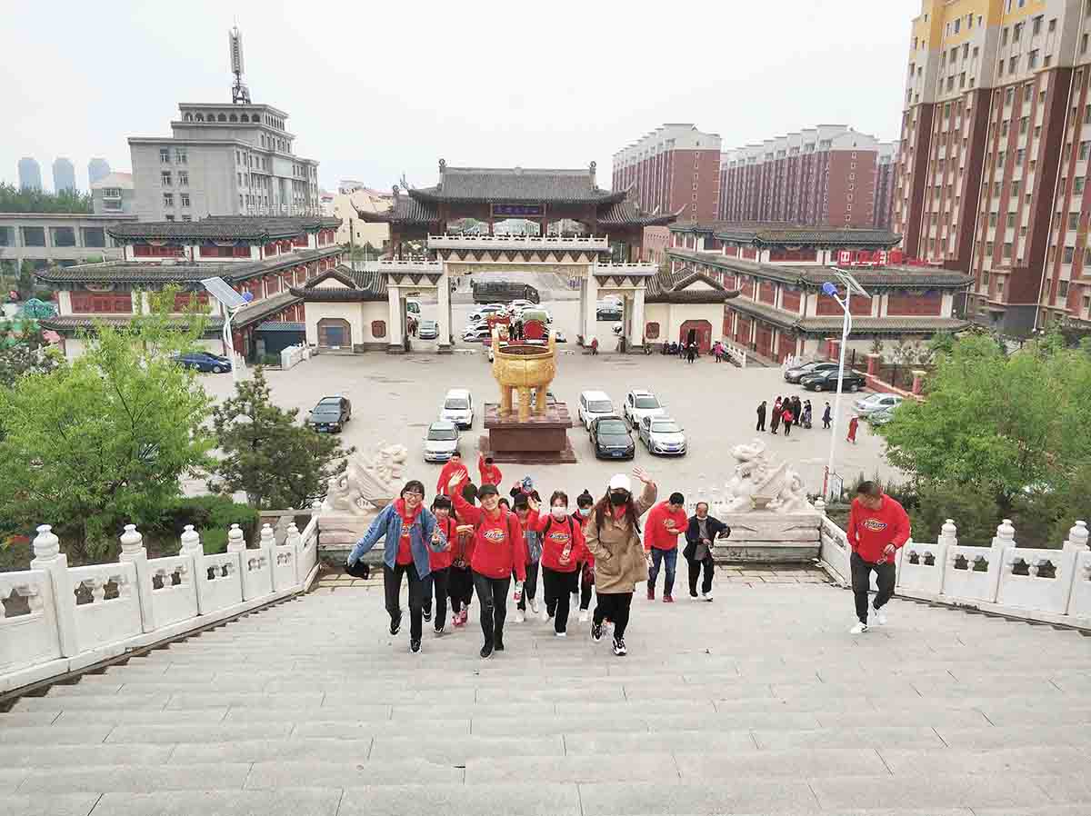 5月9日(周六)早8:00,天氣清爽。公司為大家精心準(zhǔn)備豐盛的食品也都分發(fā)下去了,整理隊(duì)伍,我們?cè)诠鹃T(mén)口合影留念后紛紛上車(chē)前往目的地,伙伴們?cè)谕局杏姓f(shuō)有笑,熱情不減,情緒高昂,經(jīng)過(guò)半個(gè)小時(shí)的輾轉(zhuǎn),順利到達(dá)目的地凌海九華山,我們先吃了點(diǎn)食物稍作休息,整理隊(duì)伍在山門(mén)口合影留念。