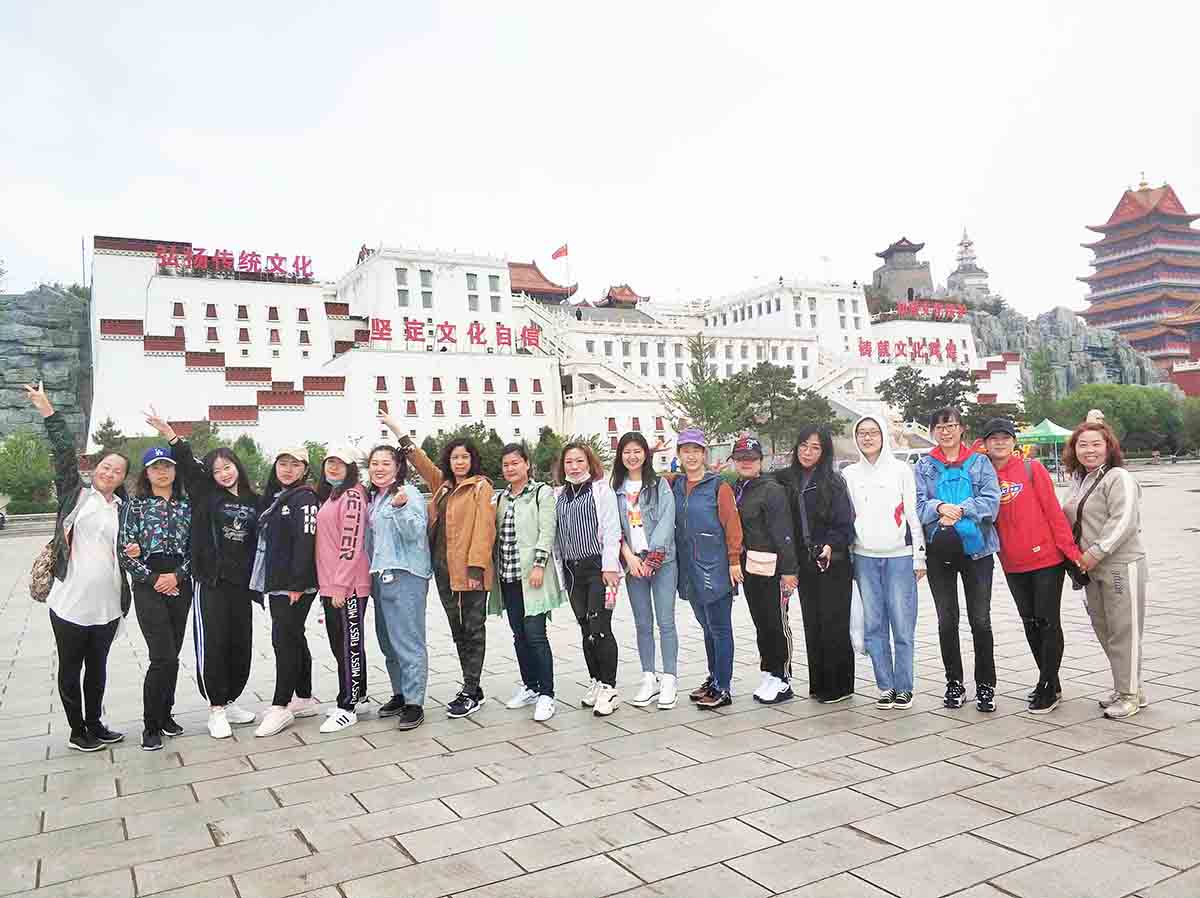 征服九華山頂峰之后,我們順勢(shì)而下,游覽了著名的慈海寺。學(xué)著周?chē)\(chéng)燒香拜佛的樣子,我們滿懷虔誠(chéng),感受著古代建筑的大氣與恢弘,也為自己許下美好的愿望。我們接著向小布達(dá)拉宮出發(fā)了。一路我們徒步前進(jìn),小白因?yàn)槠綍r(shí)鍛煉的少,在下山的時(shí)候走的太急,腳抽筋了,經(jīng)驗(yàn)豐富的李主管立刻上來(lái)按摩,還囑咐多甩一甩腿。多虧她的悉心照顧,小白的腳好多了,不影響繼續(xù)步行。小白打趣說(shuō)“自從來(lái)到九華山,腰不疼了,腿不抽了,心也不跳了,感覺(jué)越來(lái)越年輕!”大家都笑了,氣氛十分活躍。大家心情舒暢,開(kāi)心地笑著、玩著,互相交流著,活動(dòng)氣氛熱烈,歡聲笑語(yǔ)聲在山林中飄蕩。沒(méi)多久我們就來(lái)到了小布達(dá)拉宮,領(lǐng)略西域文化的洗禮,感受別樣風(fēng)情。