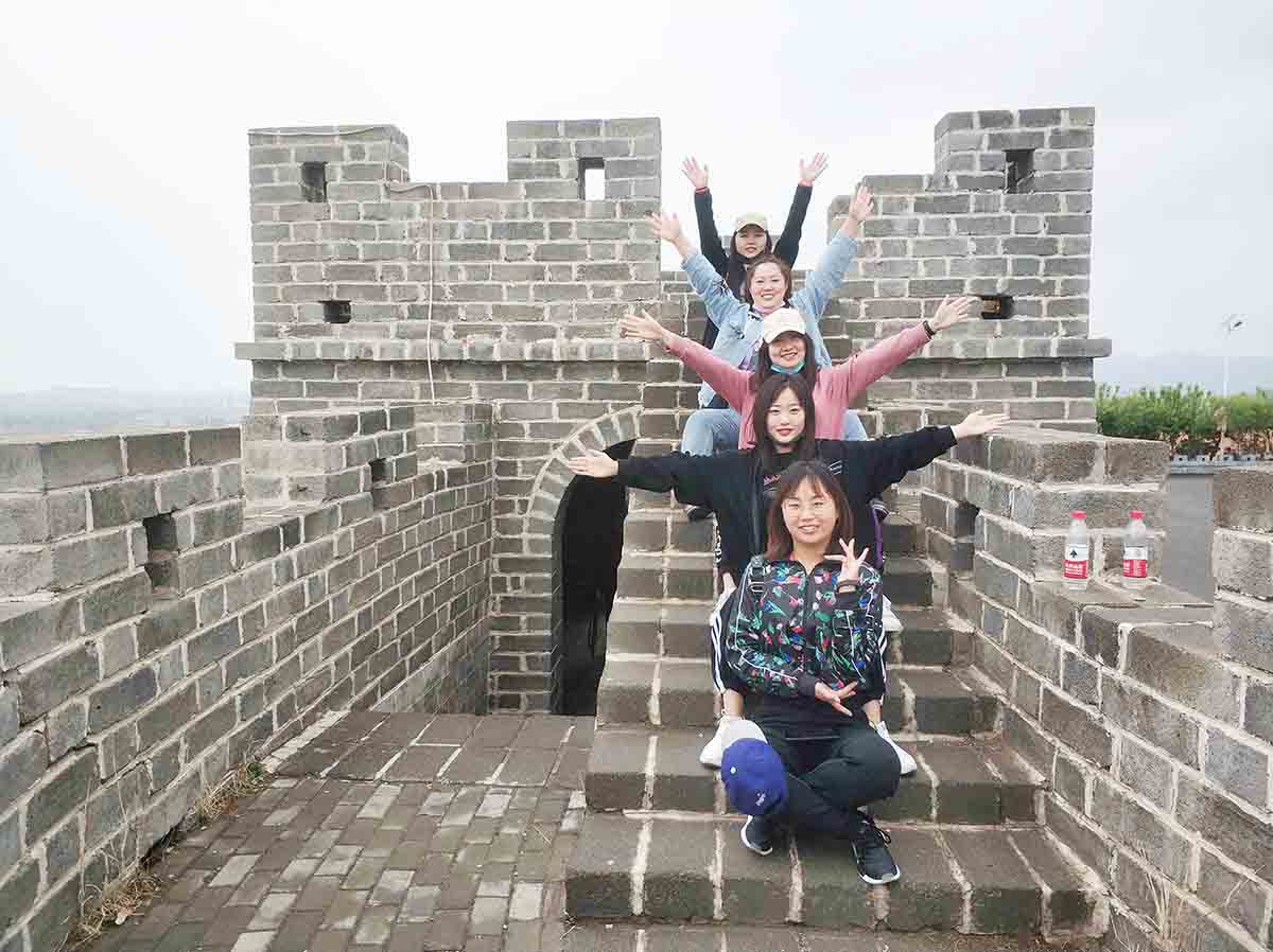 最后我們游覽了長(zhǎng)城,置身于美麗的大自然中,我們合影以作留念。愛(ài)拍照的美女?dāng)[好各種新奇特的POSE展現(xiàn)出當(dāng)代新青年的青春與活力。我們一路同行時(shí)而被仙湖水中金魚(yú)嬉戲,層巒疊嶂的山峰吸引,時(shí)而又對(duì)空中樓閣,庭宇院落、繁花美景所嘆為觀止。我們一路走一路拍,一路歡聲笑語(yǔ),收獲著屬于自己、屬于團(tuán)隊(duì)的喜躍!